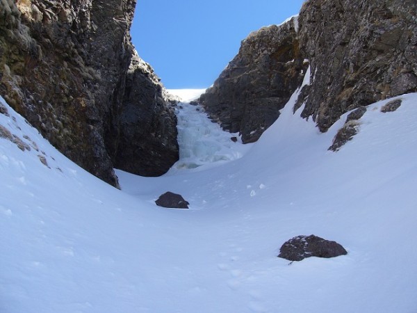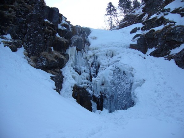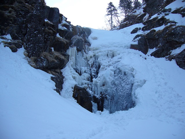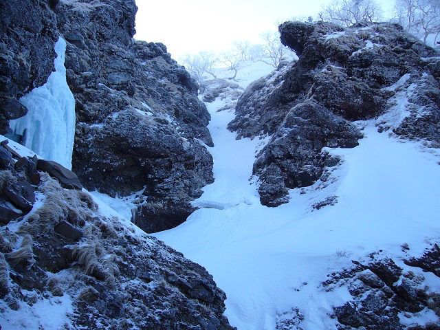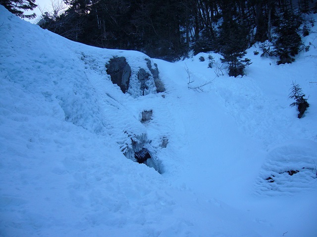 F1の様子です。雪に埋まっています。左岸を高巻きます。 11 F2