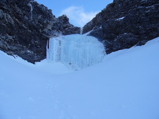 F1,F2は氷壁を登れず残念でしたが、ナイアガラの滝と大滝は満足感を味わえました。その後のジョウゴ沢・本谷から硫黄岳直下に詰め上げるルートファインディングは緊張しました。(2万5千分の1地形図では読み切れない支尾根、稜線ルートはコンパス+感?)  来季は是非80-90度の壁をリードできる実力を身に付けたい。アルパイン式は今回やったので次回のジョウゴ沢は乙女の滝等、右岸左岸の滝を挑戦しながらレベルアップしたい。