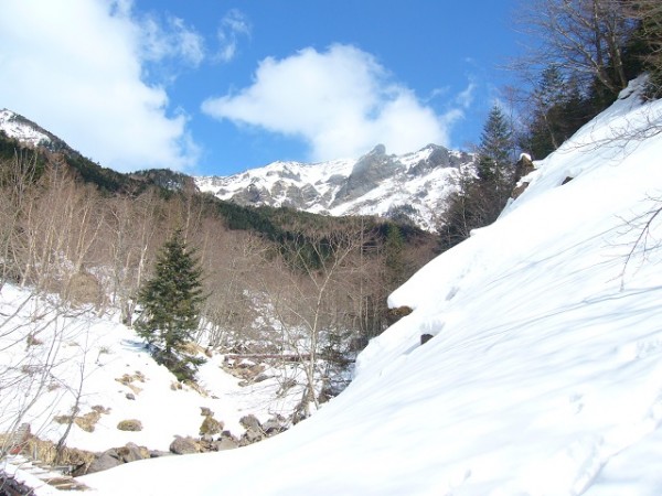 北沢ルートから見た大同心と小同心です。残雪期の趣きがあります。 05 赤岳鉱泉