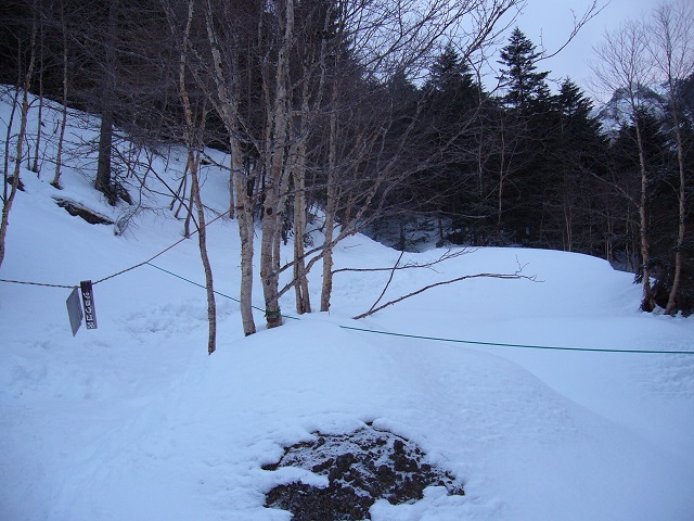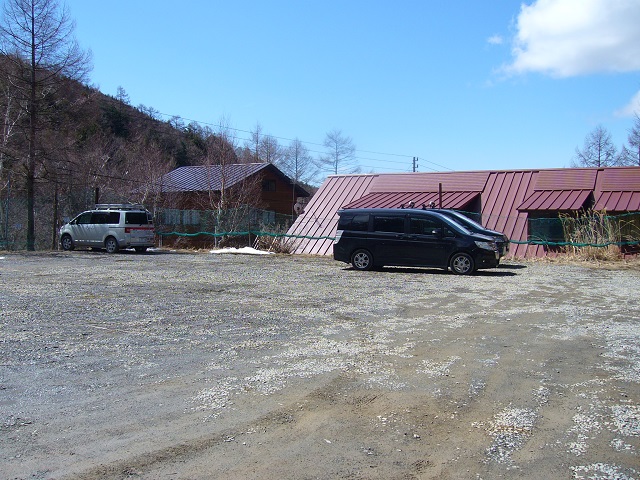 赤岳山荘の駐車場の様子です。積雪がありません。 03 横岳