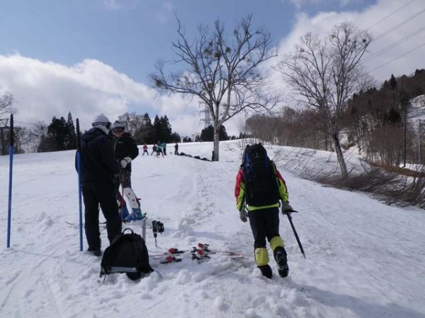 次のかぐらゴンドラリフト乗場では現金を直接支払って何とか乗車させてもらった。和田小屋より再びゲレンデの横を縫って登る。傾斜が緩むと更に最上部のリフトが遠くに望まれ、なかなかスキー場独特の喧噪を振り切れない。最上部のリフト終点で登山届を出し、ようやくバックカントリーの世界へ。