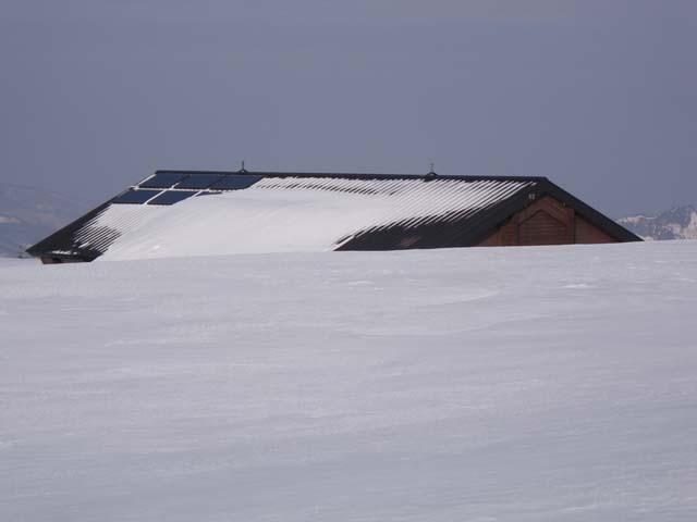 ここからは二度目のトレースとなるが、前回(2005年GW)より雪の量は多めに感じた。北に遠く佐武流山、その奥に苗場山を望み、辿ってきた道程に満足するが、まだ全行程の半分を過ぎた程度だ。野反湖方面から上がってきたパーティーの姿もあったが、こちらへ向かってくるものは見えない。本日は上ノ倉山付近まで行ければ、明日の下山も確実なものになってくるから先へと急ぐ。上ノ間山から高度を下げると幾分風も弱くなってきた。やはり稜線上部、特に白砂山付近は風の通り道のようだ。