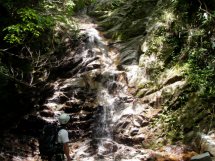 ザイルを出す。滝は水が少ないので登りやすいように感じたが、藻が意外と滑りやすくフリクションを効かせながらあがる。