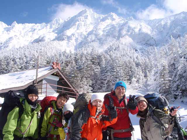 やがて凍りついた地蔵仏に迎えられて、地蔵尾根を下る。アイゼンをつけていても油断すれば滑るほどきつい斜面に対して体を横に向けて時には後ろ向きで下る。登りは根性、下りは技術と教わったがまさに下りは歩き方や道の選び方で歩く安定感が全然違うことを感じながら、まだうまく歩けない自分に苛立ちも感じた。