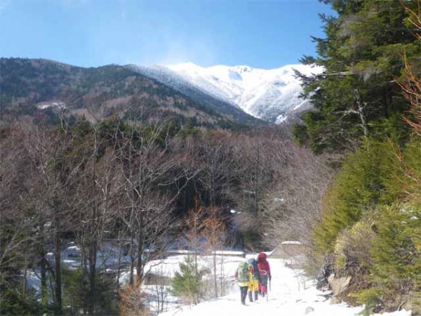 行者小屋について振り返った八ヶ岳連峰は神々しかった。暫し山に見惚れ、地蔵の頭から自分たちが下ったルートを振り返る。小屋からは柳川南沢に沿って下る。途中にアイスクライミングのゲレンデがあるとのことで見学にきていた人とも出会った。美濃戸山荘から美濃戸口まで林道を歩き、15時のバスに乗車し帰路に着いた。