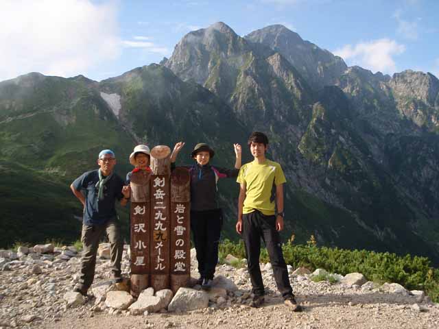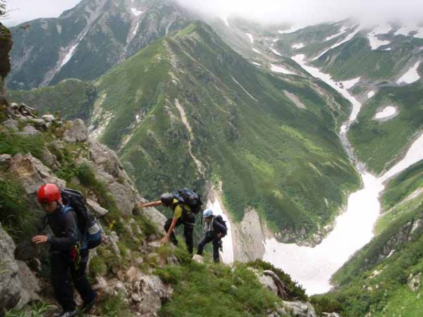 剱沢集中山行のひとつ。小林は剱岳は4度目だが源次郎尾根は未経験、他3人は剱自体が初めて。そんなメンバで岩のひとつひとつに時間がかかり、あるいはルートファインディングに迷って、本番日は何と16時間行動。草臥(くたび)れたが面白い山行だった。