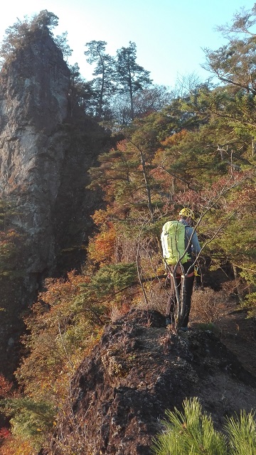相馬岳北稜は西側の妙義湖と並行して続く稜線で裏妙義の対面にあたる。尾根歩きあり、岩登りあり、ルートファインディングあり、かつ首都圏からアクセスしやすいバリエーションルートである。11月3日は晴天の特異日らしく、週末悪天候続きの最近には珍しく良いお天気だった。我々のパーティはつつがなく行動して予定より早めに下山できた。