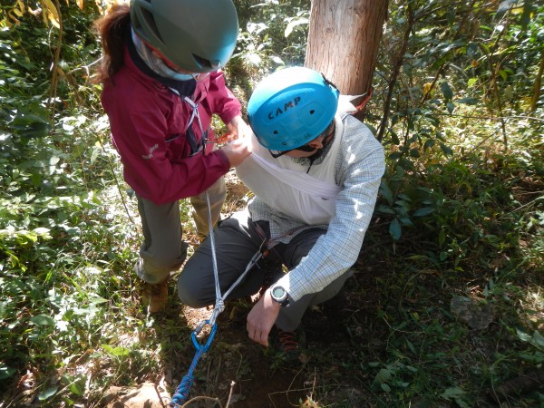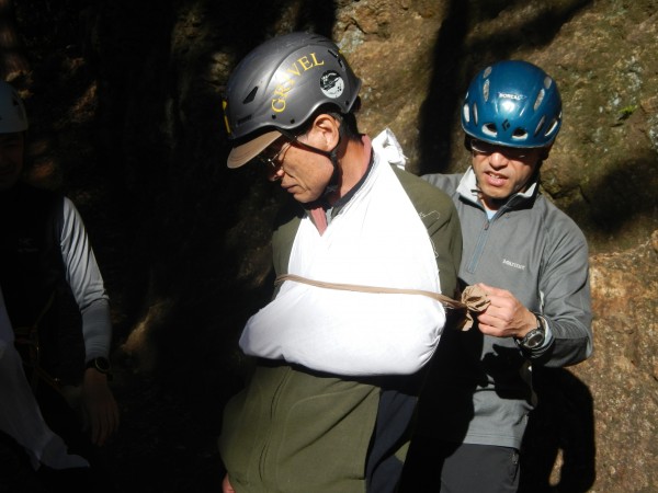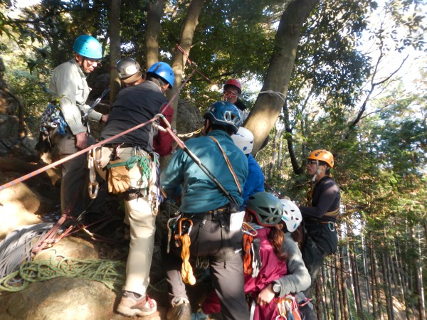 天覧山の岩場で救助技術のトレーニングを行いました!