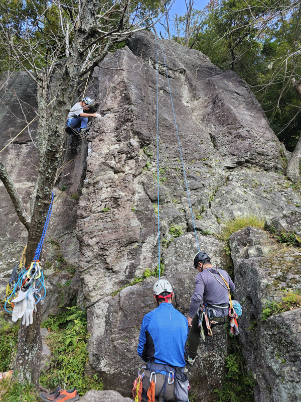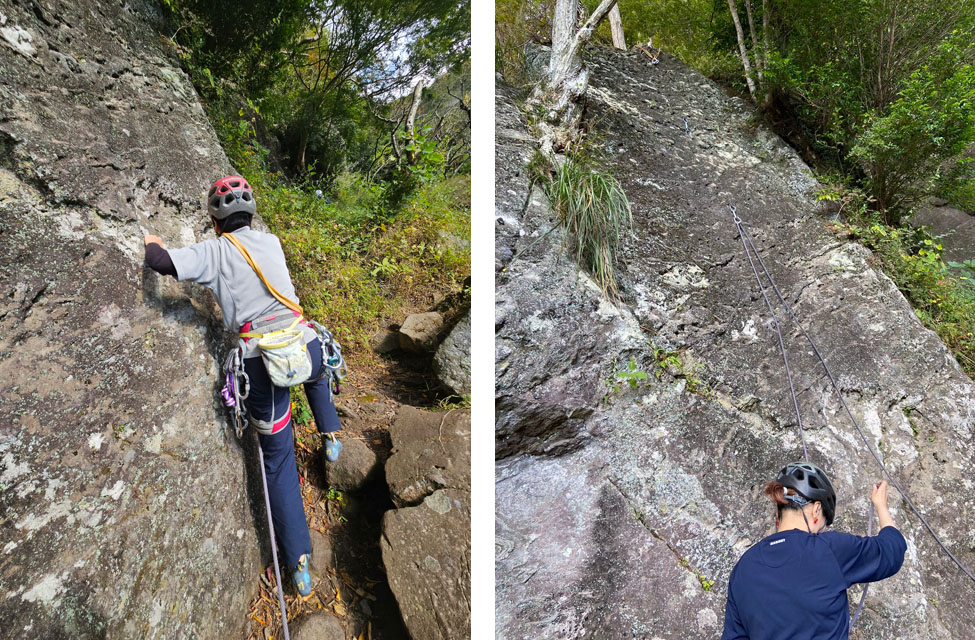 平さんがリードで登ってトップロープ仕様にし、鹿内が登り、平さんが支点回収するという至れり尽くせりでした。