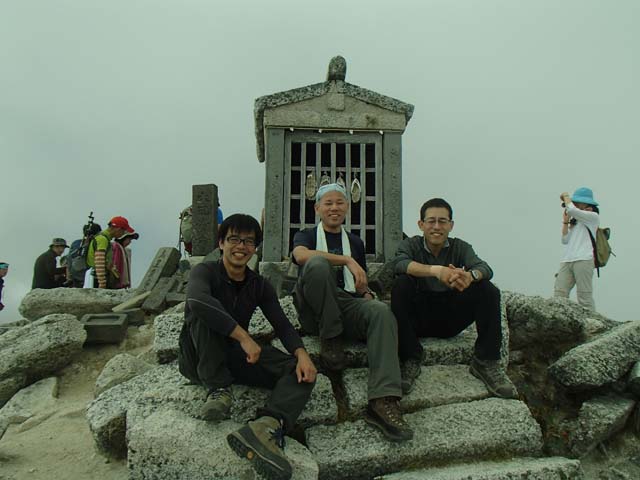 8:10 行動開始。土曜の朝だというのにここのテント場はすでに満杯に近い。仙水峠を経て駒津峰に向かうと、前方に白い山体がガスのベールから顔を出したり隠れたり。直登ルートを取って 11:50 甲斐駒ヶ岳登頂。百名山だけあって賑わっている。