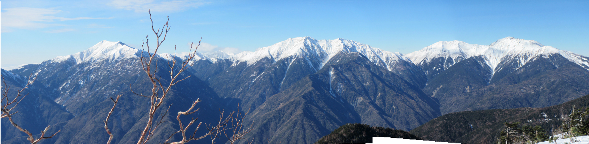 1/1 2500m6:30~布引山7:50-8:00~p2021(桧横手山)9:50~広河原12:10-12:30~林道終点14:10~ヴィラ雨畑15:00