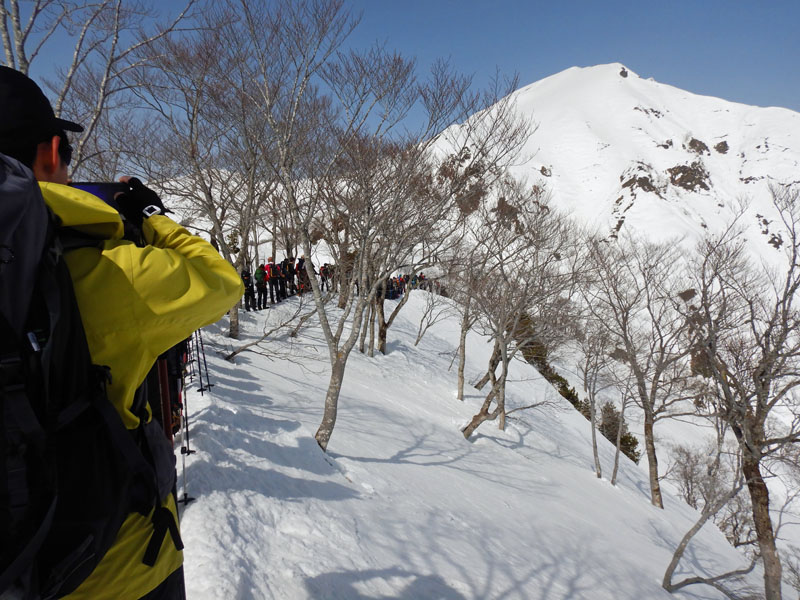 しばらく歩くと急斜面をトラバース気味に下降するポイントで大渋滞。