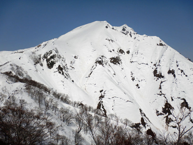 登山ルート上のクラックは一箇所程度と少ないものの、山域としては東から南斜面に大きなクラック等が複数確認でき、全層雪崩のリスクが高まっている。連日の高気温により雪は腐り気味で、踏み抜きはほんの数回程度だったもののアイゼンの置き方によりずるっと滑ってしまうことも。ルートを見極めれば踏み抜きも減少し問題なかったが、もはや時間の問題かもしれない。4月末の状況のように感じた。
