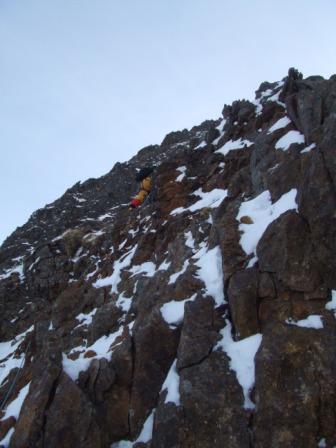 6ピッチ目(松井リード)。雪壁の途中から,スタートし,リッジにでる。