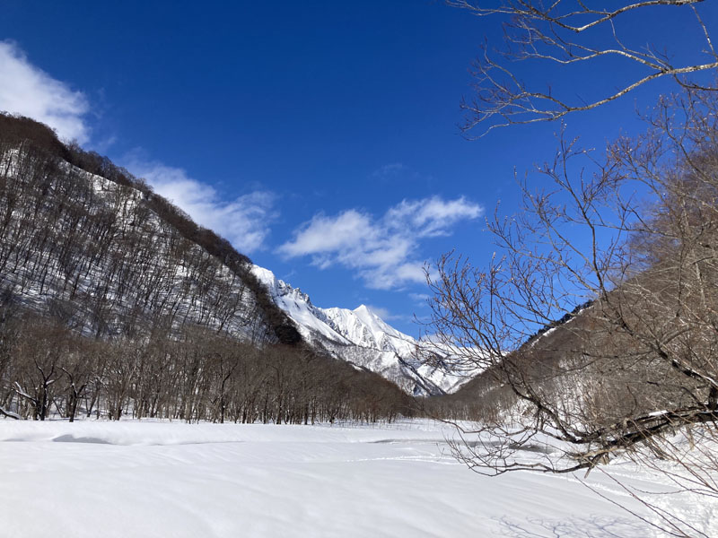 白毛門登山口に集合。前夜、研究生の先輩たち3名は西黒尾根で雪洞泊をしたそうだ。