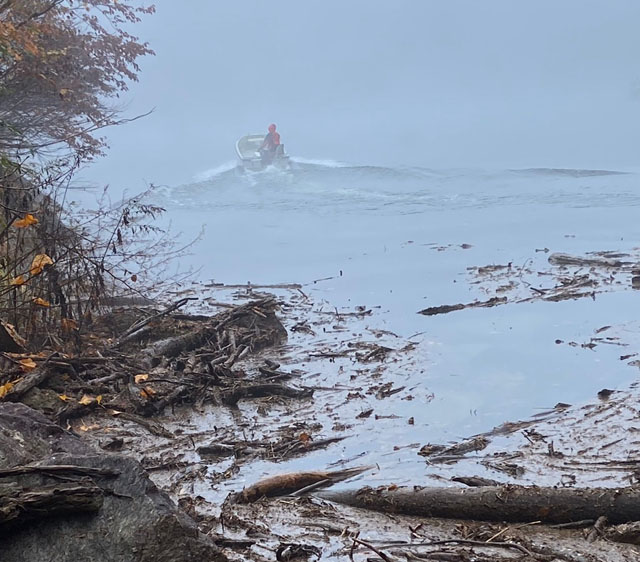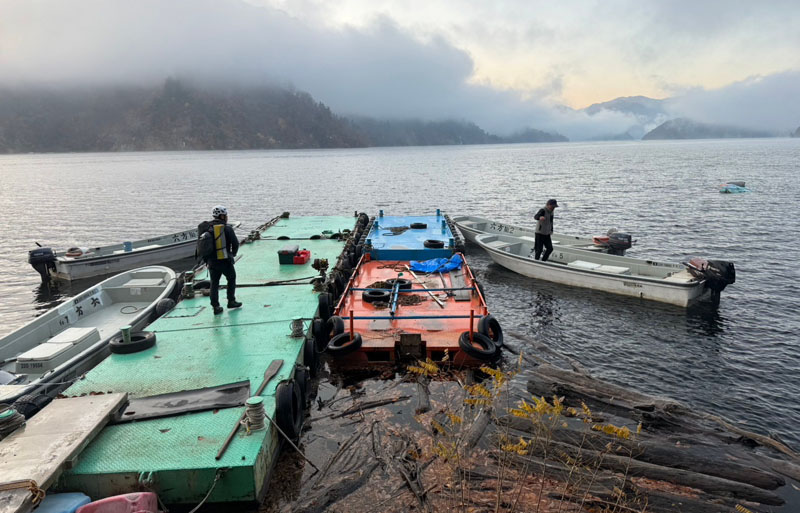放射冷却で霧が立ち込め徐々に視界が狭くなり、白石沢出合いに到着するや否や船頭さんが「こんな霧が深いのは初めてで緊張した」と。水面は通常より5mほど高いそうだ。