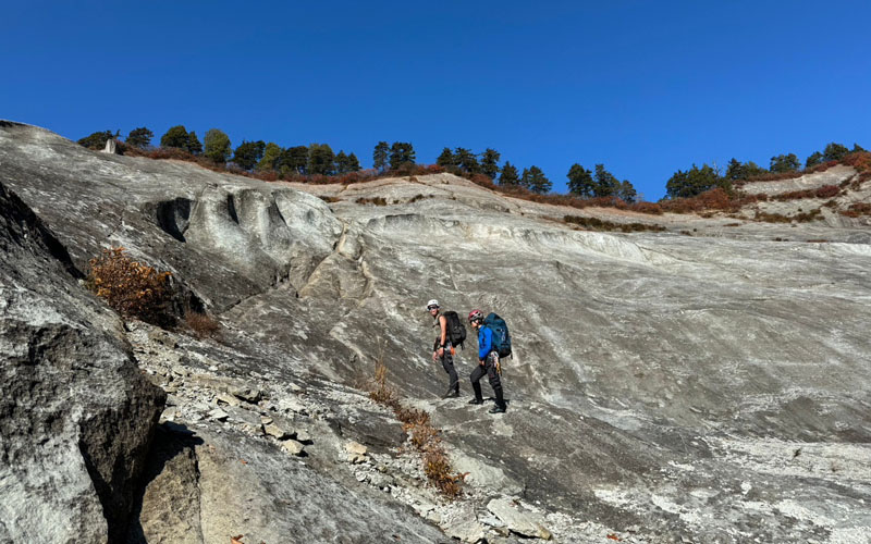 その先は傾斜の緩いところを選べば、三者三様のシューズどれもフリクションを効かせ問題なく歩ける。
