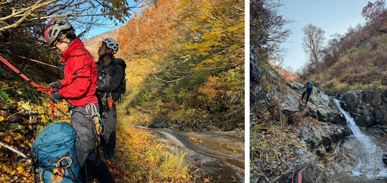 懸垂下降は全部で3回。30mロープでは不安な箇所あり、50mロープを推奨する。