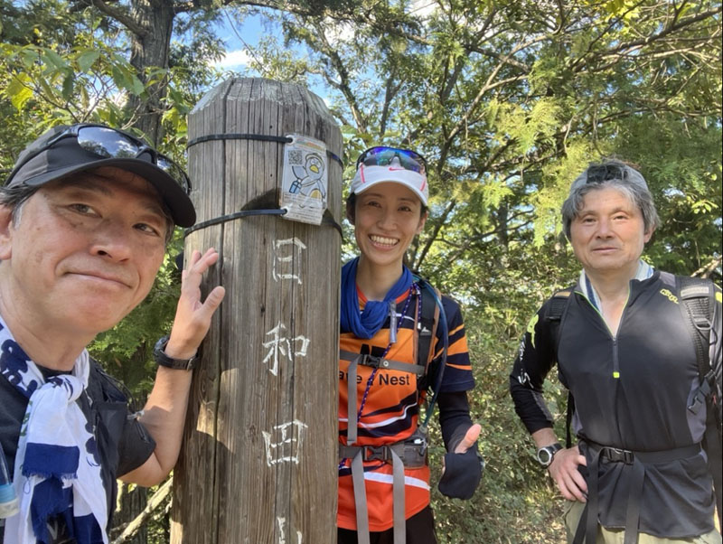 続いて多峯主山(271m)、久須美山(260m)。昨年のクリーン登山の逆向きルートだ。逆向きでも意外と景色を覚えているものだなぁ。今回は「平地や下りは小走りで、少し早めの山行」としたが、実際下りになると二人のペースがとにかく早くて最初から飛ばしていく。真似をしながら走り始めると、これまでビビっていたような泥の斜面も意外と怖くないもので不思議だ。