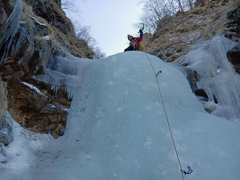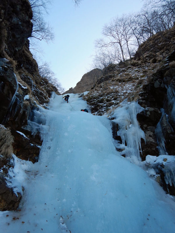 F2をリードしている途中でブーツのソールが剥がれてしまい、そこで遡行を終了しました。マモちゃんには申し訳ないことをしました。そこまではとても楽しく登ることが出来ました。やはりアイスクライミングはいいですね。
