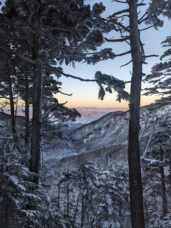 今シーズン初の雪山登山。アイゼンワークが全くダメで、少しショック。景色は素晴らしく、アルプスの山なみが美しかった。