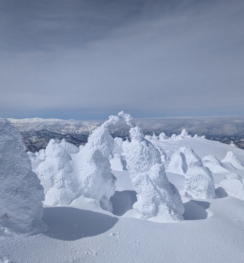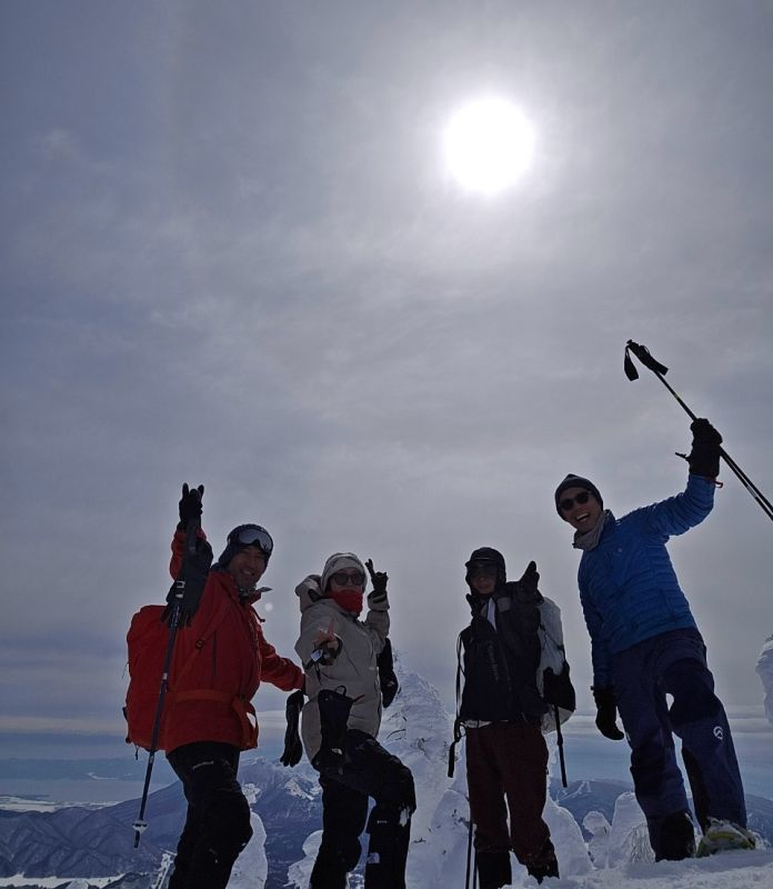 風もなく楽しい山行となった。下山後は駿谷さんお知り合いの方の岳温泉のお宿で反省会。