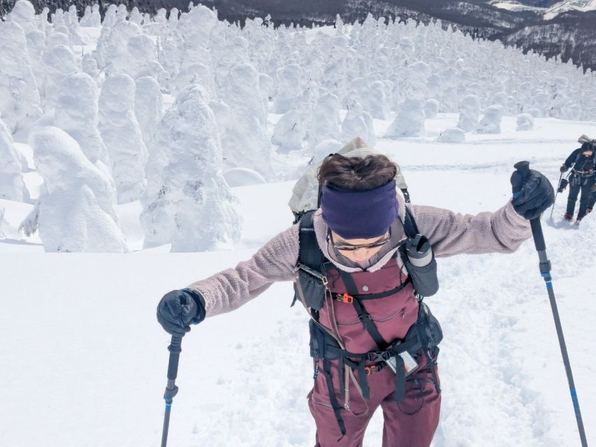 第4リフト降り口まで登った後、森林地帯にはいる。木に積もった雪が標高をあげるにつれ多くなる。