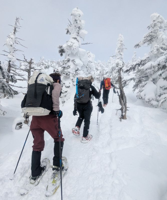 グランデコスノーリゾートからワカンとスノーシューを装着しスタート。