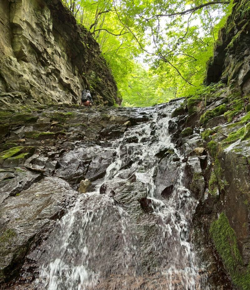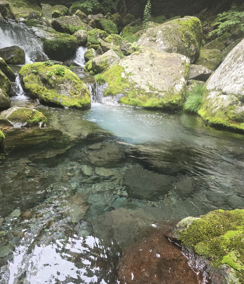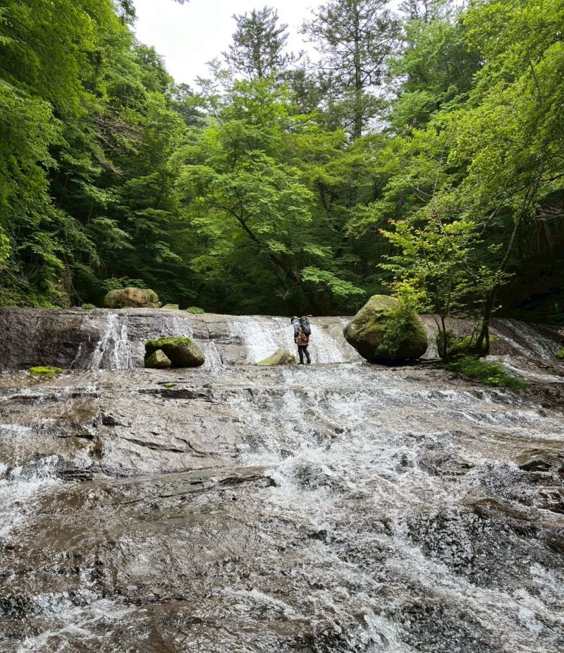 体力が落ちているため、難易度が高くなくいつでも離脱できて綺麗な沢ということで、スッカン沢&桜沢の沢登りを行った。山の駅たかはらから登山道でスッカン沢と桜沢の出合まで下り、スッカン沢を遡行。適当な場所で脱渓し、登山道で出合に戻って桜沢を遡行。桜沢脱渓後はそのまま駐車場まで登って行くという、ちょっと変わった行程だ。