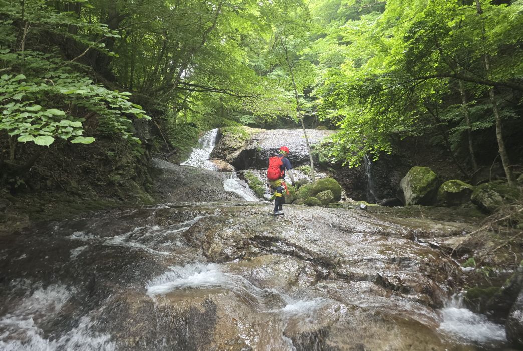 咆哮霹靂の滝のあたりまで下り、装備を整えまずはスッカン沢へ。