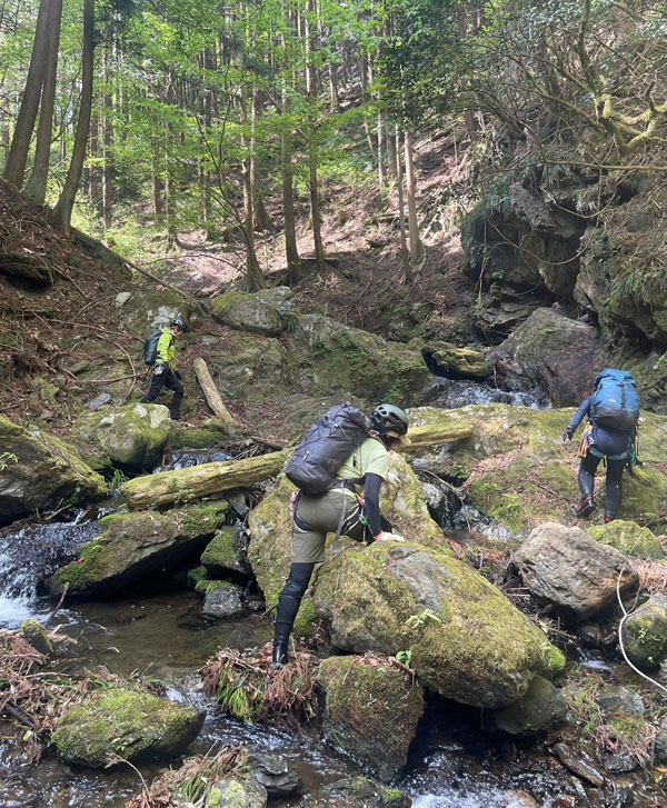 2024年の沢はじめとして、奥武蔵の姥小屋沢へ。通常の沢装備に、ロープは30mを用意した。