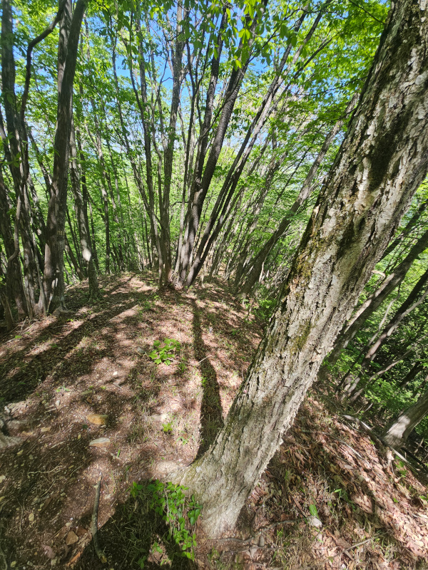 テープもありルートに迷うことはないが、痩せ尾根やかなり急な下りポイントがあり気を遣う。風も沢もない下山は午前とはまるで違い、かなり暑かった。