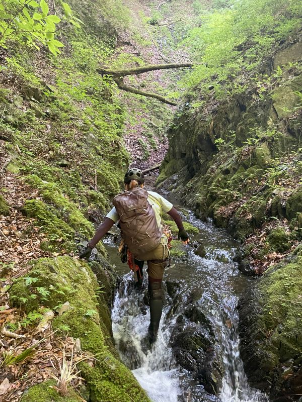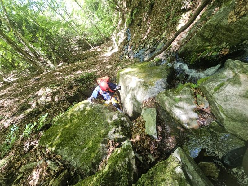 2年前の講習で行った際の記憶を思い起こしながら進む。入渓地点はテープがありわかりやすい。