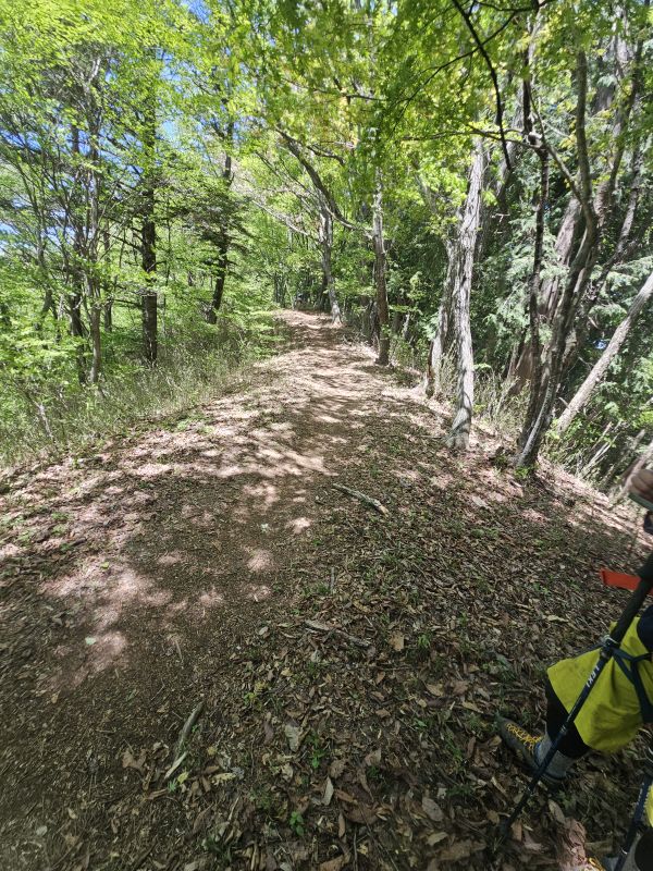 下りは山と高原地図の破線ルートである長尾尾根(軍刀利山北尾根)を使う。