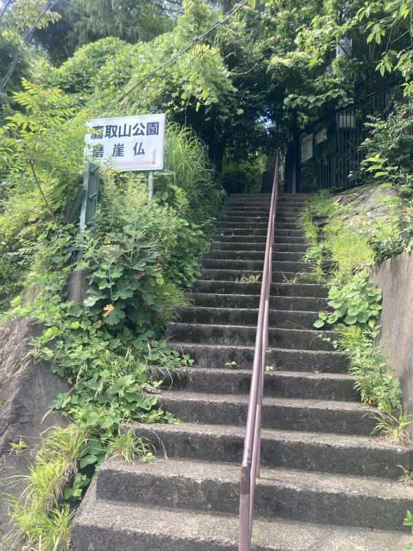 坂道を少し戻り、分岐横の階段から鷹取山公園に入ることができる。今回使用する場所は磨崖仏に近いので、ここから入るのが良い。