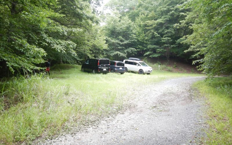 林道を車で進むが全面通行止めと掲示されたゲートがある。そこで駐車し沢装備に換装していると、地元の御仁が車でやってきて声をかけられた。すかさず、この先も進めるのか訊くと「進めるしゲートも施錠されることはない」とのこと。さらに先まで車で行くことにした。林道の路面状況は悪くなるが許容範囲。やがてやや開けたスペースが現れ、そこに駐車する。