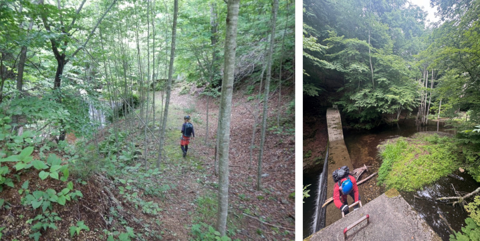 沢は駐車スペースの先で二俣となっているが、右俣側の踏み跡をたどるとすぐに堰堤が見える。堰堤の取っ手を利用して入渓。