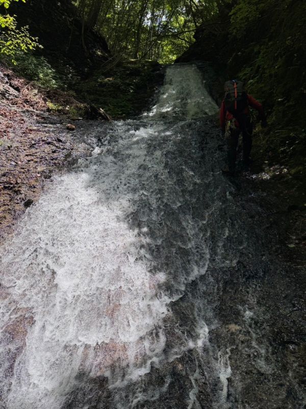 最初はなだらかだが、右に曲がると結構な滝が姿を見せる。上部は若干滑った。左から巻くこともできる