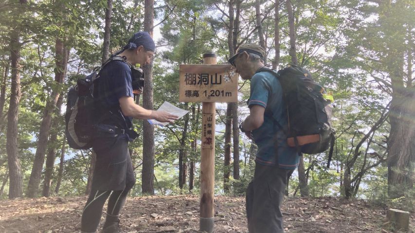 棚洞山(1201.4m)を経て入道山(992m)へ。その直後の支尾根の分岐はとてもわかりづらく、コンパスと尾根の傾斜や長さを確認しながら進んだ。
