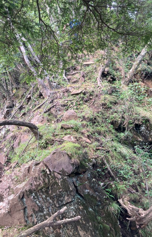 笹子雁ヶ腹摺山からエスケープルートの南尾根(一般道)を下降という考えもあったが、当初予定より早く進んでおり、雨もまだ降らなさそうなので、予定のルートを歩き通そうという決断をした。