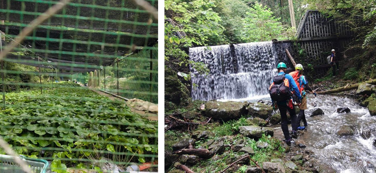 林道真名井線のとりがや橋から川沿いを歩き、宗像兵一『新版 東京起点 沢登りルート100』の遡行図にある「ワサビ田」に10時30分に到着。沢装備を整えた後、4つある堰堤を越えた場所から遡行を開始した。