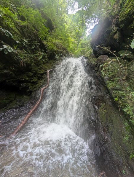 魚止めの滝に到着。最初見た瞬間は、結構水量があり本当に1級の初心者向けの沢なんだろうかと感じた。