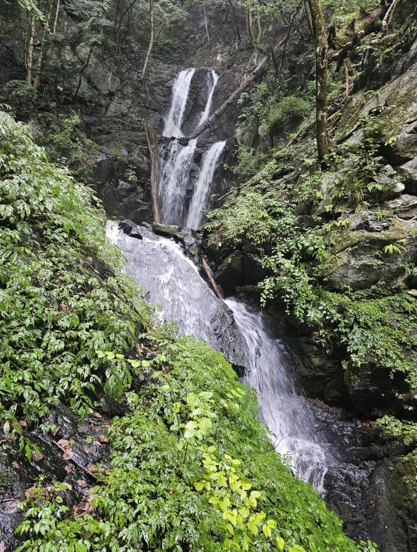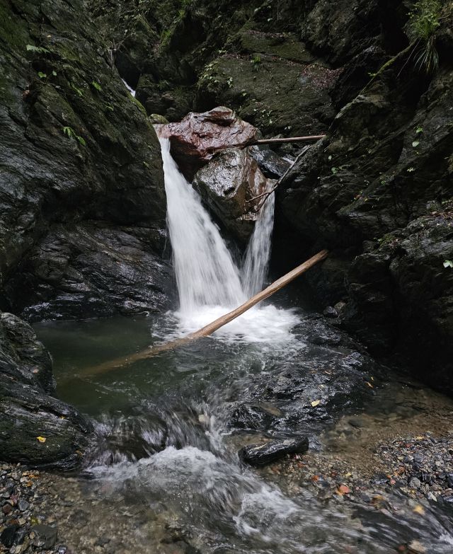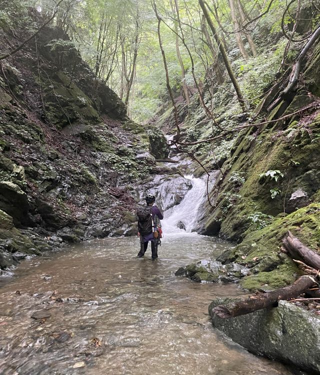 ちなみに二度目に坊主谷にトライした際には、入渓してすぐの滝の水量が凄くてとても登れず、巻くルートもなく、前日の雨による増水かと20分ほどで撤退した。しかし、あとになって入渓点を誤っていたことが判明。参照した記録に駐車スペースのすぐ下から入渓とあったのだが、そもそも記載と異なる地点に駐車していた。沢が林道沿いでヤマレコ等のログを見ても気づけなかった。スタート地点を間違うと全てが狂うので、これはこれで勉強になった。