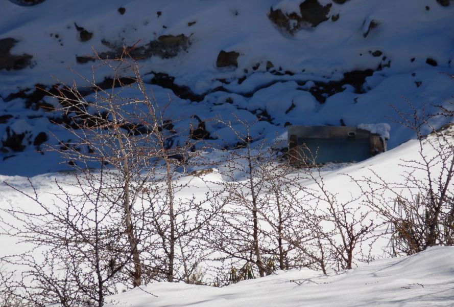 夏沢峠を下り本沢温泉へ。厳冬期だというのに、野天風呂の湯船の蓋は開けっ放しだった。