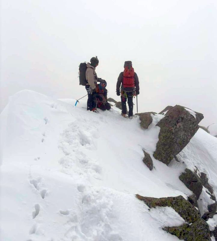 登頂してもガスが出て景色は見えず、残念。ピークからの下りも凍っている場所があり緊張した。