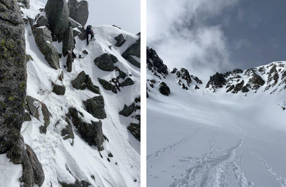 一般ルートなので難所には鎖があるものの、岩と雪のミックスでこんなに難易度が変わるとは。