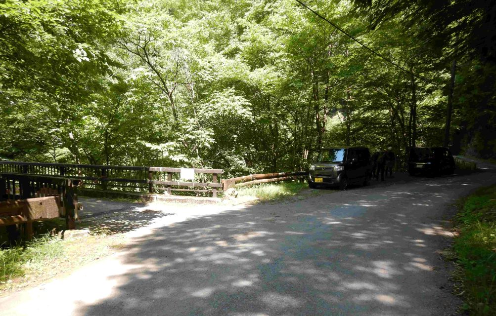 沢登りのガイドブックを眺めていると、埼玉県の最果ての地に手頃な沢があるではないか。初心者向けと紹介されつつ大きな滝もあるらしい。メンバーを募って計画。西武秩父駅に集合し高橋車で現地へ。学習の森大若沢休憩所へ渡る橋の手前のスペースに駐車。
