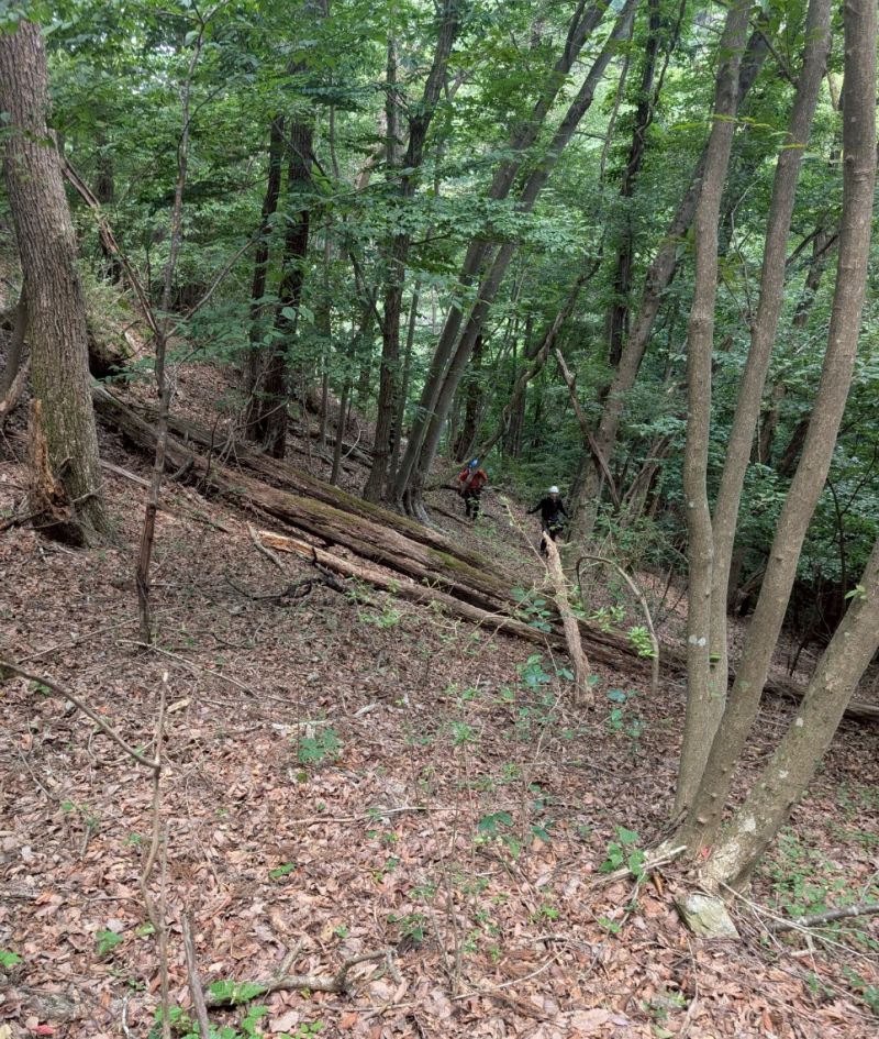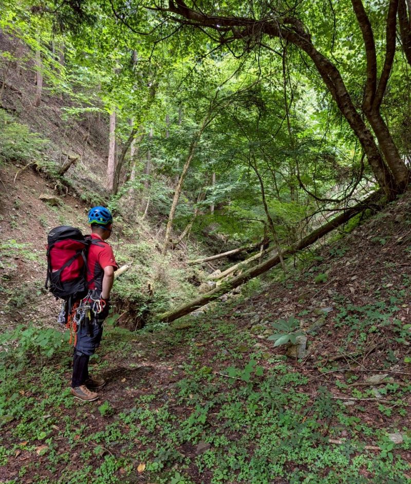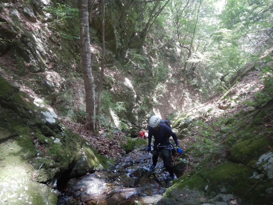 左沢は栗坂峠から入渓。結構な斜面だったので弱点を探しながら降りていく。
