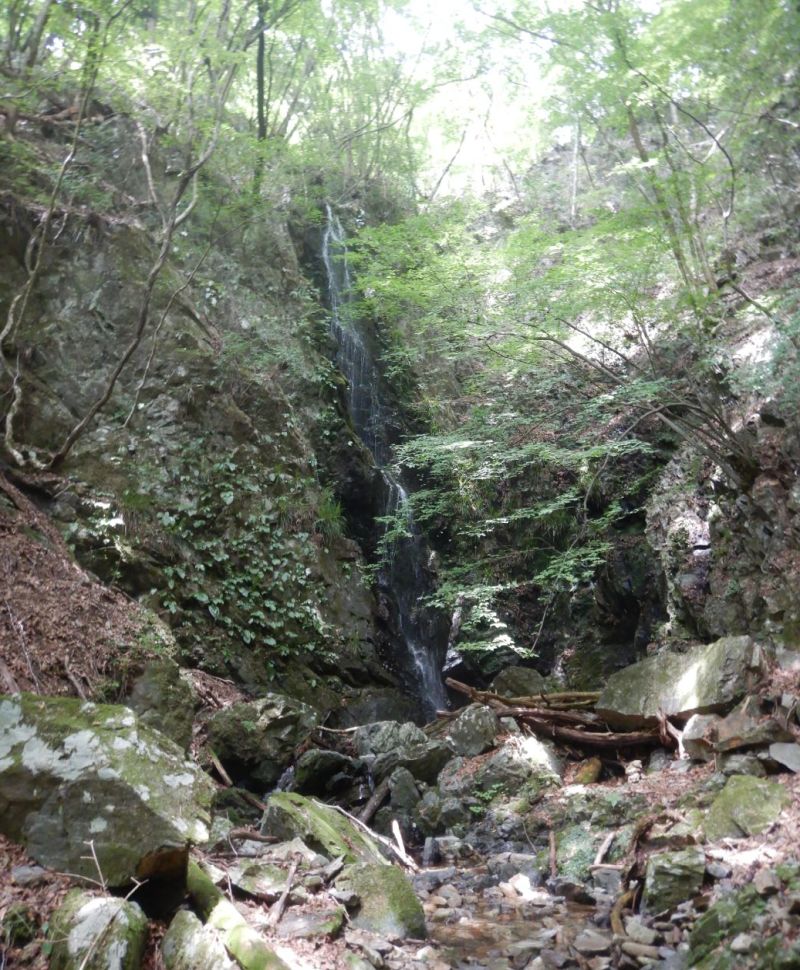 以降は平凡な渓相であるが久しく遡行されていないのか、蜘蛛の巣だらけで難儀した。左沢との二俣を過ぎるとすぐに陸軍滝となる。