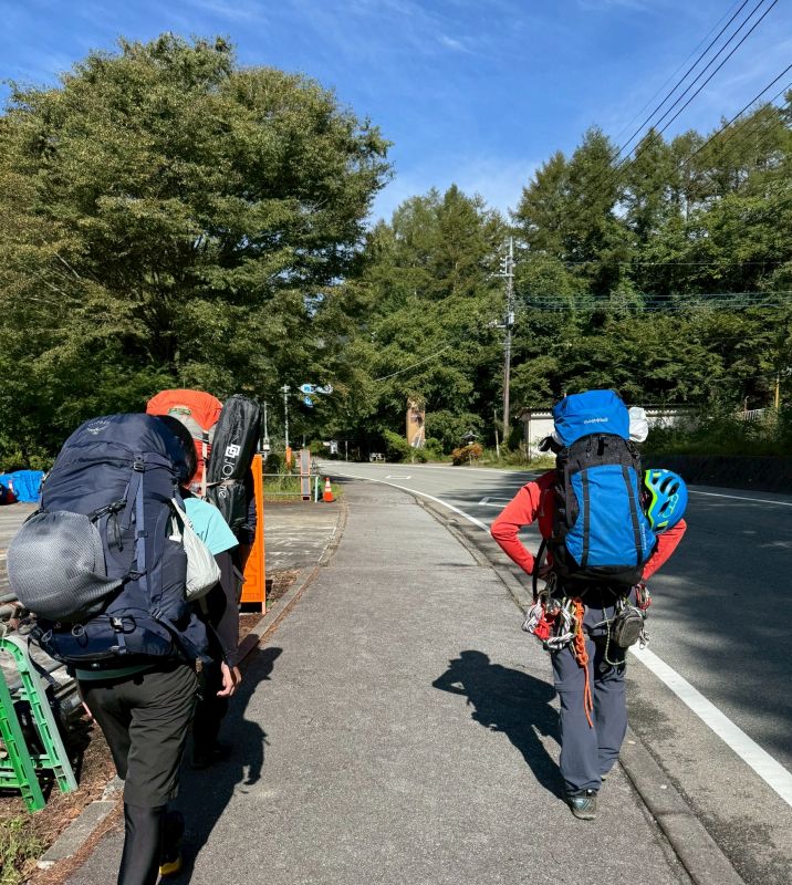 道の駅みとみに車を泊めて、いざ出発。まずは沢の取りつきまで歩きます。